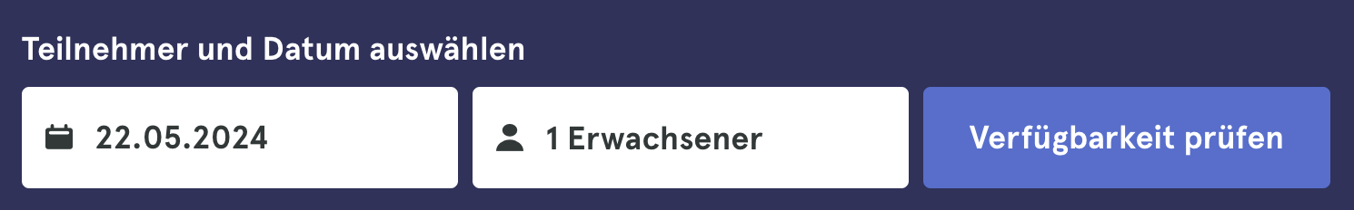 Um die Verfügbarkeit einer Aktivität zu prüfen, müssen Sie lediglich das Datum und die Anzahl der Reisenden auswählen und können dann die verschiedenen verfügbaren Optionen abfragen.